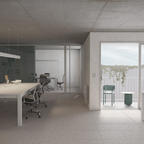 Detrás de una estética sobria y refinada que unifica y ordena la lectura del conjunto, se ha desplegado un intenso pero hábil ejercicio proyectual que logra condensar la convivencia de seis tipologías distributivas aptas para acomodar programas de vivienda y/o oficinas, según deseo y preferencia de los futuros usuarios.